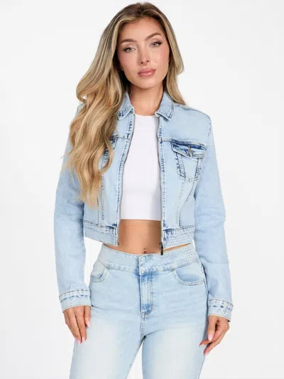 Zulera Crop Rhinestone Denim Jacket In Blue