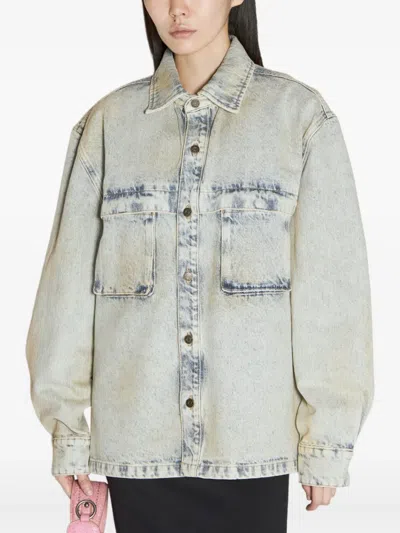Bleached-effect Denim Jacket In Blue