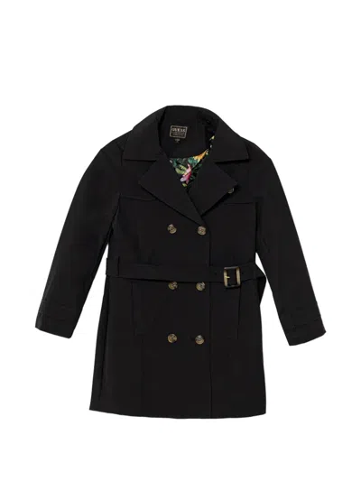 Kids' Double-breasted Belted Coat In Black