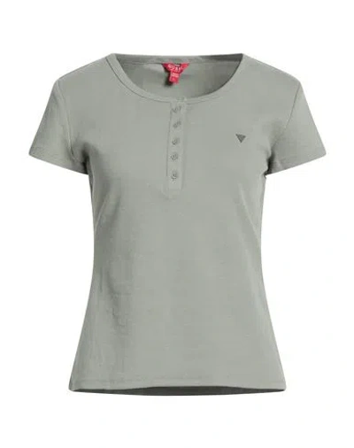 Woman T-shirt Sage Green Size L Cotton, Elastane In Gray