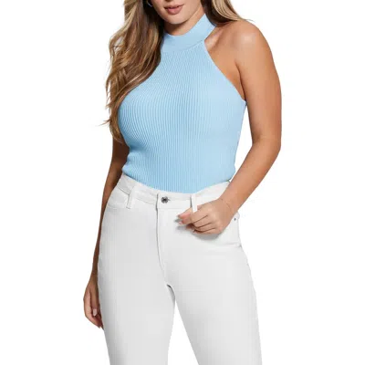 Shayna Mock Neck Rib Sweater In Blue