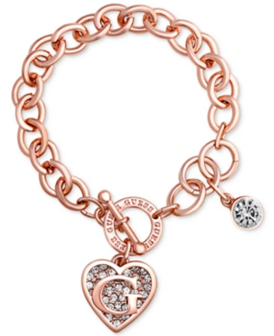 Silver-tone Crystal Logo Heart Charm Link Bracelet