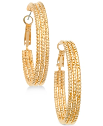 Gold-tone Crystal Flat Edge Large Hoop Earrings, 2.5"