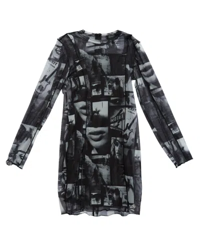 Kids' Big Girls Printed Mesh Long Sleeve Dress With Inner Tank Dress In Black
