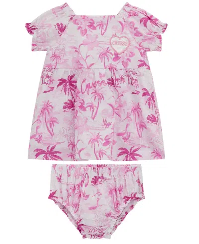 Baby Girls 2-piece Puff Sleeve Printed Dress And Coordinating Bloomer Set