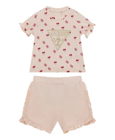 Baby Girls 2-piece Short Sleeve All Over Print T-shirt And Active Short Set In Pink
