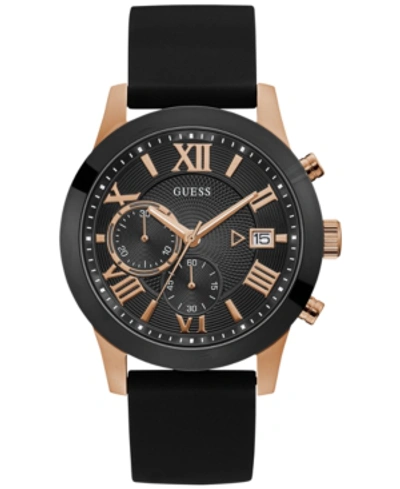 Men's Multi-function Black Silicone Watch, 44mm