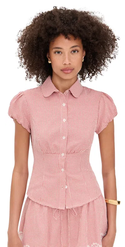 Liana Gingham Top Red Love In Pink