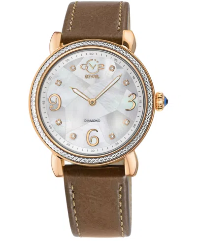 Women's Piemonte Swiss Quartz Diamond Accents Light Brown Italian Leather Strap Watch 36mm In Two Tone Gold