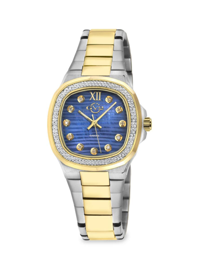 Women's Genoa 37mm Two Tone Stainless Steel & Diamond Bracelet Watch In Sapphire