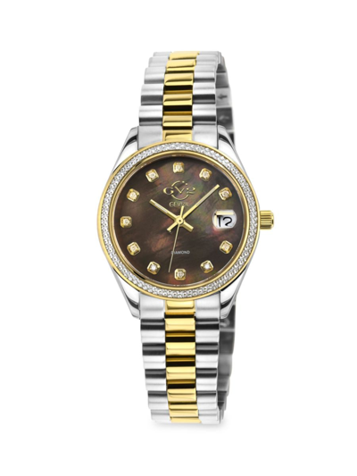 Women's Turin 34mm Two Tone Stainless Steel, Mother Of Pearl & 1.60 Tcw Diamond Bracelet Watch In Brown