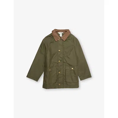 Kids' Contrast-collar Long-sleeve Waxed-cotton Jacket 3-10 Years Khaki Green Dark
