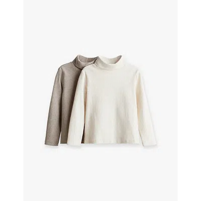 Kids' White Ribbed Turtleneck Pack Of Two Cotton-jersey Tops 2-10 Y
