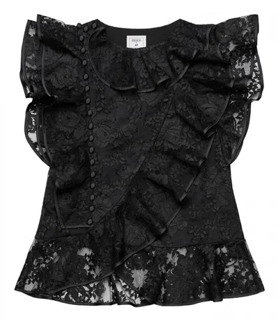 Pre-owned Erdem X Lace Ruffle Top With Flounces Black Floral Blouse Xs Ships Today