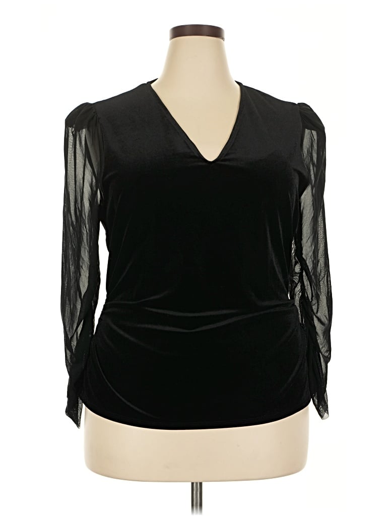 3/4 Sleeve Top Black V Neck Tops