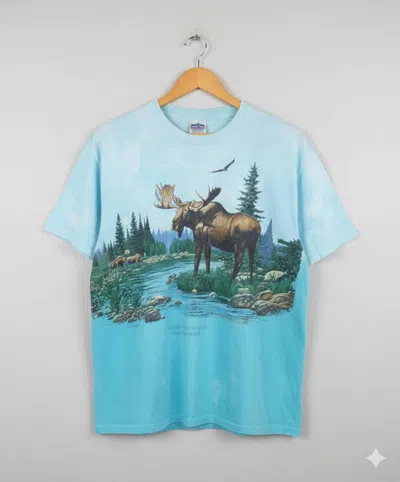 Pre-owned Vintage Oneita Moose Tie Dye Mount Washington New Hampshire In Blue