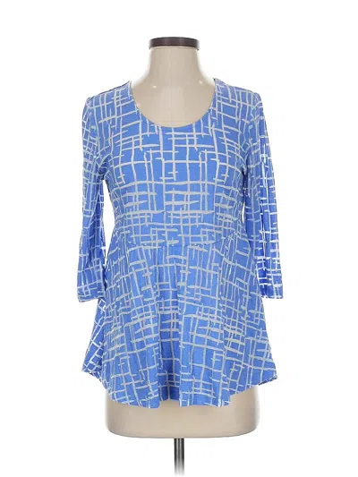 Pre-owned 3/4 Sleeve Top Blue Square Neckline Tops