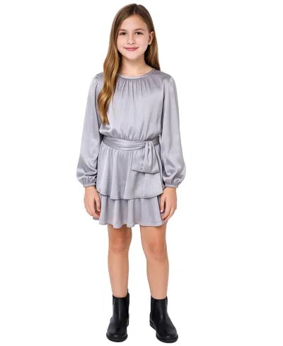 Girls 7-16 Long Sleeves Ruffle Dress In Animal Print