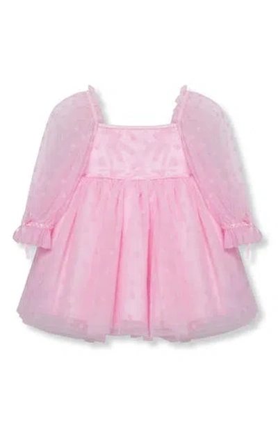 Kids Bow Accent Long Sleeve Tulle Babydoll Dress In Pink