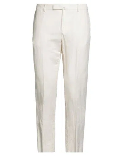 Man Pants Ivory Size 34 Cotton, Elastane In Neutral