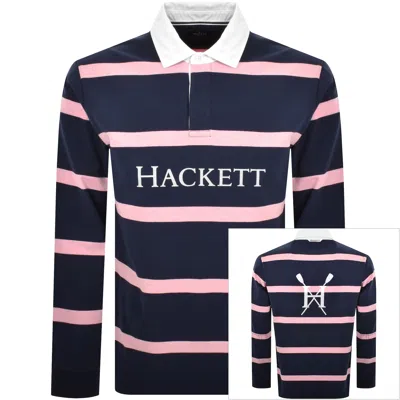 Jacquard Tipped Polo T Shirt Navy In Blue
