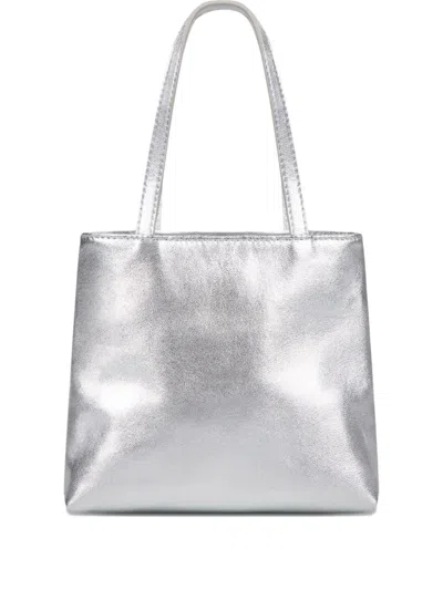 Leather Tote Bag In Silver