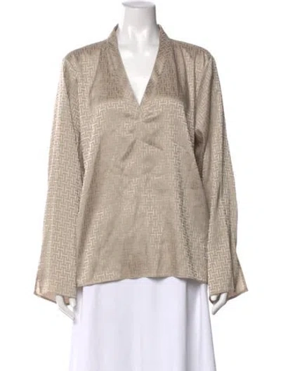 Pre-owned V-neck Long Sleeve Blouse In Gray