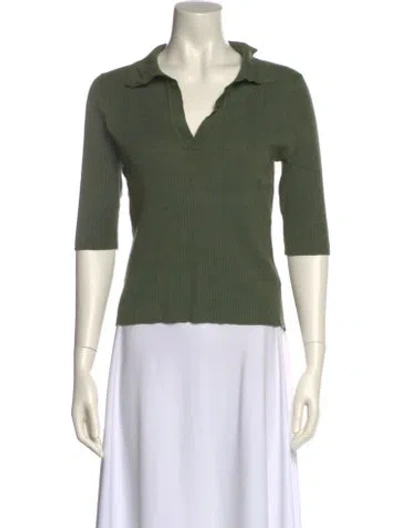 Pre-owned V-neck Three-quarter Sleeve Polo In Green