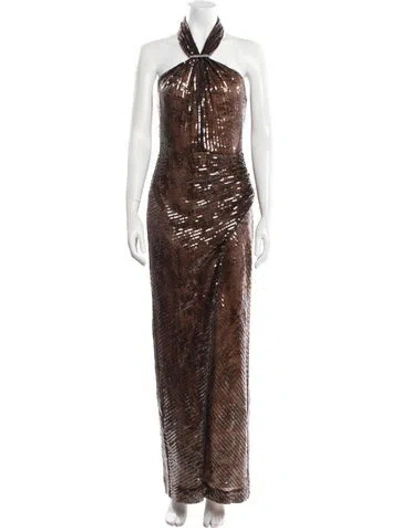 Pre-owned Halterneck Long Dress In Brown