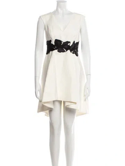 Pre-owned V-neck Knee-length Dress W/ Tags In Neutral