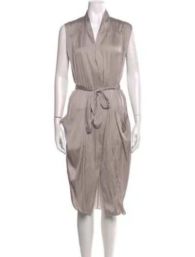 Pre-owned V-neck Knee-length Dress In Gray