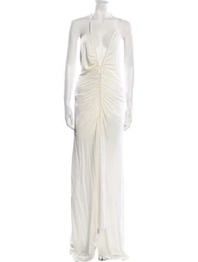 Pre-owned Bateau Neckline Long Dress In Neutral