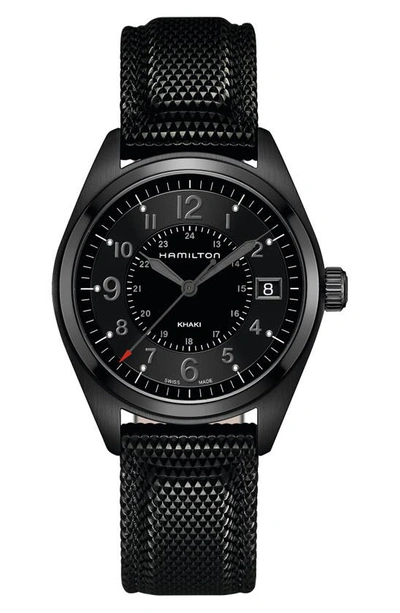 Unisex Swiss Mechanical Khaki Field Black Nato Strap Watch 38mm In Grey/silver