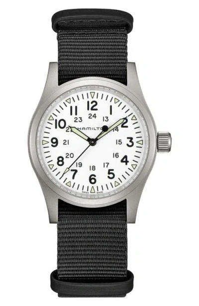 Khaki Field Mechanical Manual Winding White Dial Fabric Strap Men's Watch H69439910