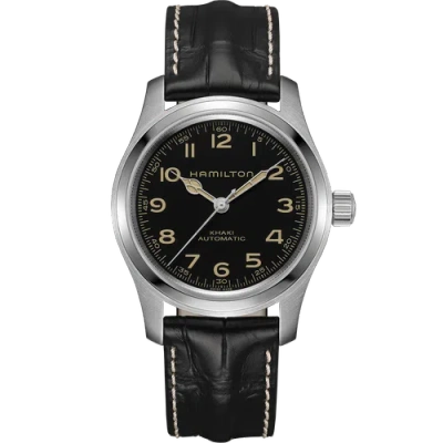 Pre-owned Khaki Field Auto Black Dial Leather Men's Watch H70455533
