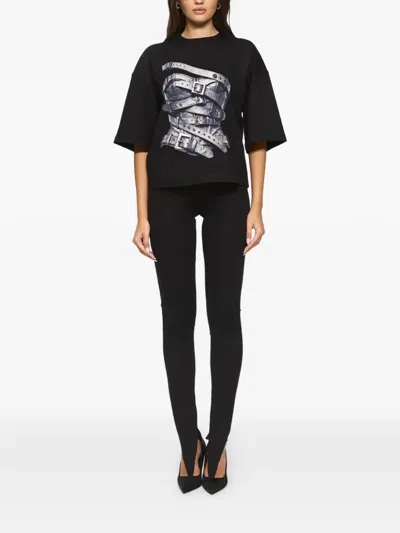 Dolce Buckled-corset Print T-shirt Mini Day Dress In Black