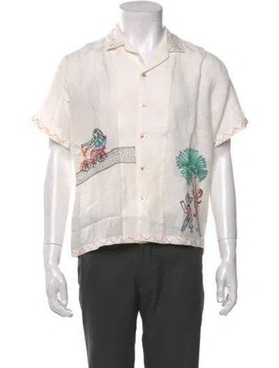 Pre-owned Linen Graphic Print Shirt In White