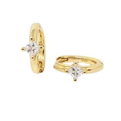 Women's White / Gold Small Diamond Huggie Minimalist Gold Plated Hoop Earrings In Multi