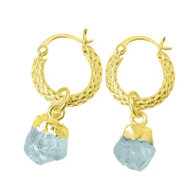 Women's Blue / Gold Raw Aquamarine March Birthstone Huggie Hoops Gold Vermeil Plated Gemstone Earrin