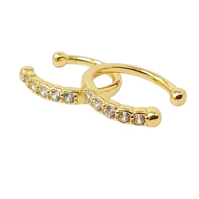 Women's Gold Dainty Ear Cuff Paved Conch Hoops No Piercing Required