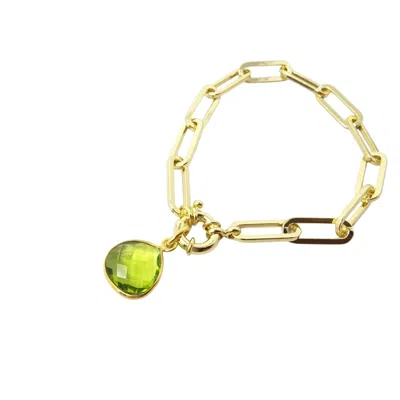 Women's Gold / Green Gold Plated Peridot August Birthstone Paperclip Bracelet In Multi