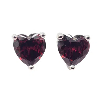 Women's Silver / Red Garnet Heart Sterling Silver Stud Gemstone Earrings In Multi