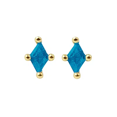 Women's Blue / Gold Tiny Turquoise Stud December Birthstone Diamond Shaped Earrings