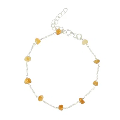 Women's Yellow / Orange / Silver Raw Citrine Gemstone November Birthstone Sterling Silver Bracelet