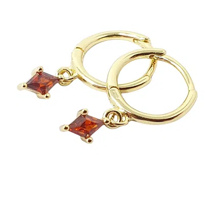 Women's Gold / Red Garnet January Birthstone Delicate Dangle Hoops In Multi