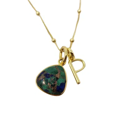 Women's Green / Blue / Gold Gold Vermeil Azurite & Malachite Initial Pendant Charm Necklace In Multi