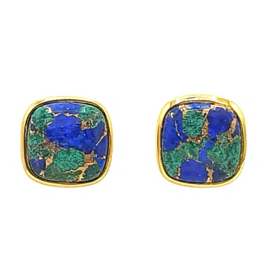 Women's Green / Blue / Gold Gold Vermeil Plated Azurite And Malachite Stud Earrings In Multi