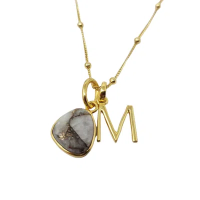 Women's Grey / Gold Gold Vermeil Plated Herkimer Diamond April Birthstone Statement Initial Necklace In Multi