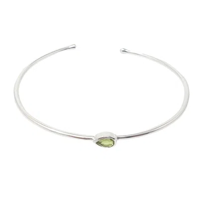 Women's Silver / Green Minimalist Sterling Silver Peridot August Birthstone Bangle Bracelet In Multi