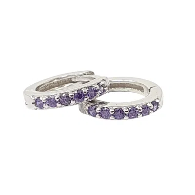 Women's Amethyst February Birthstone Small Silver Huggie Hoops